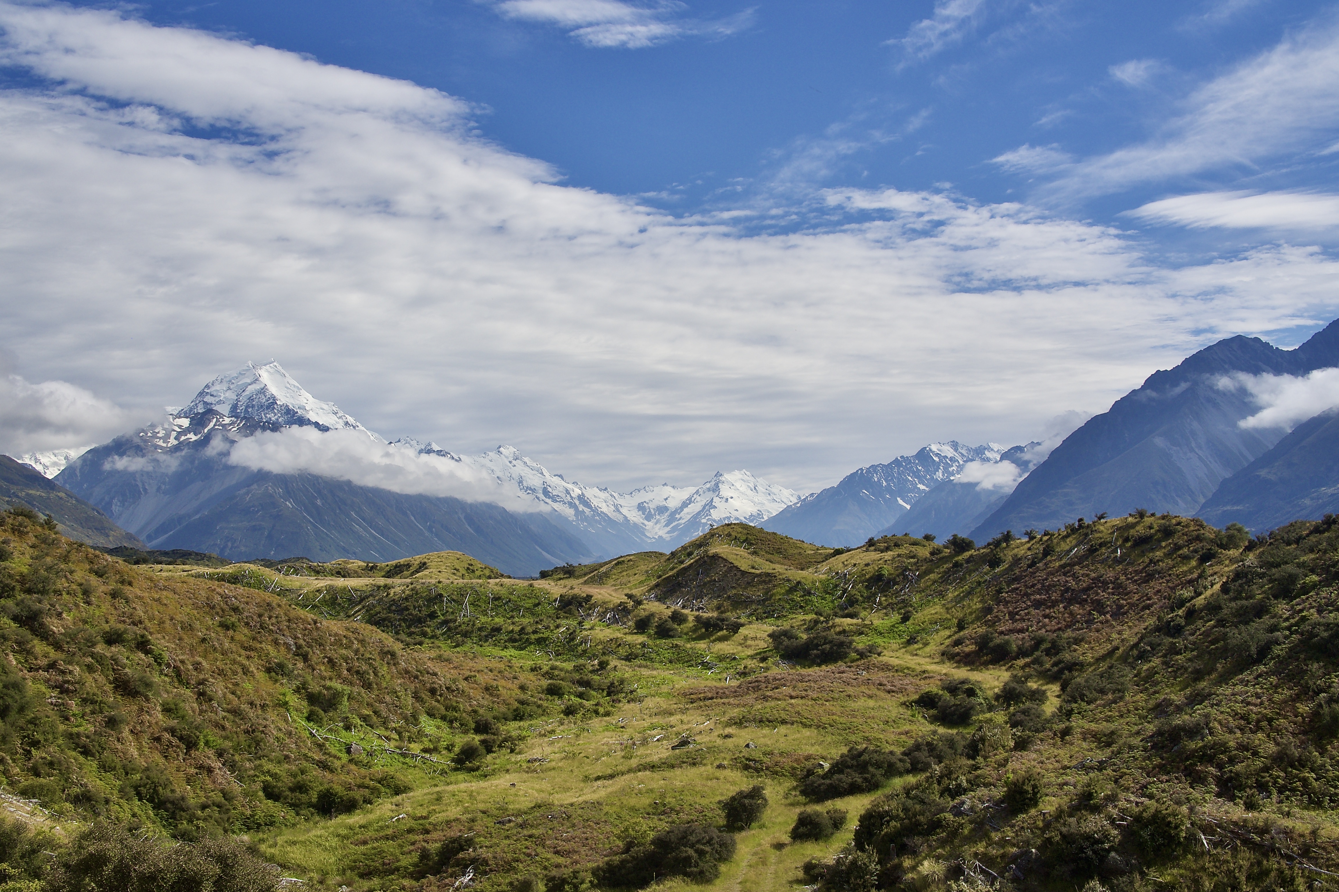 Assorted photos of might Aoraki-Mount Cook, the tallest mountain in New Zealand (3724 m), including from Sealy Tarn.
